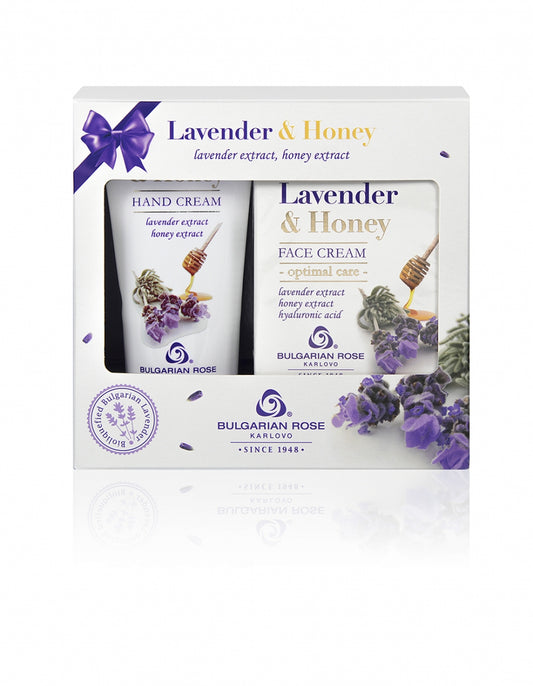 Rose Bulgarian Lavender and Honey Face Cream and Hand Cream Gift Set with Natural Lavender and Honey Extract, Deep Moisturizing Gift Set