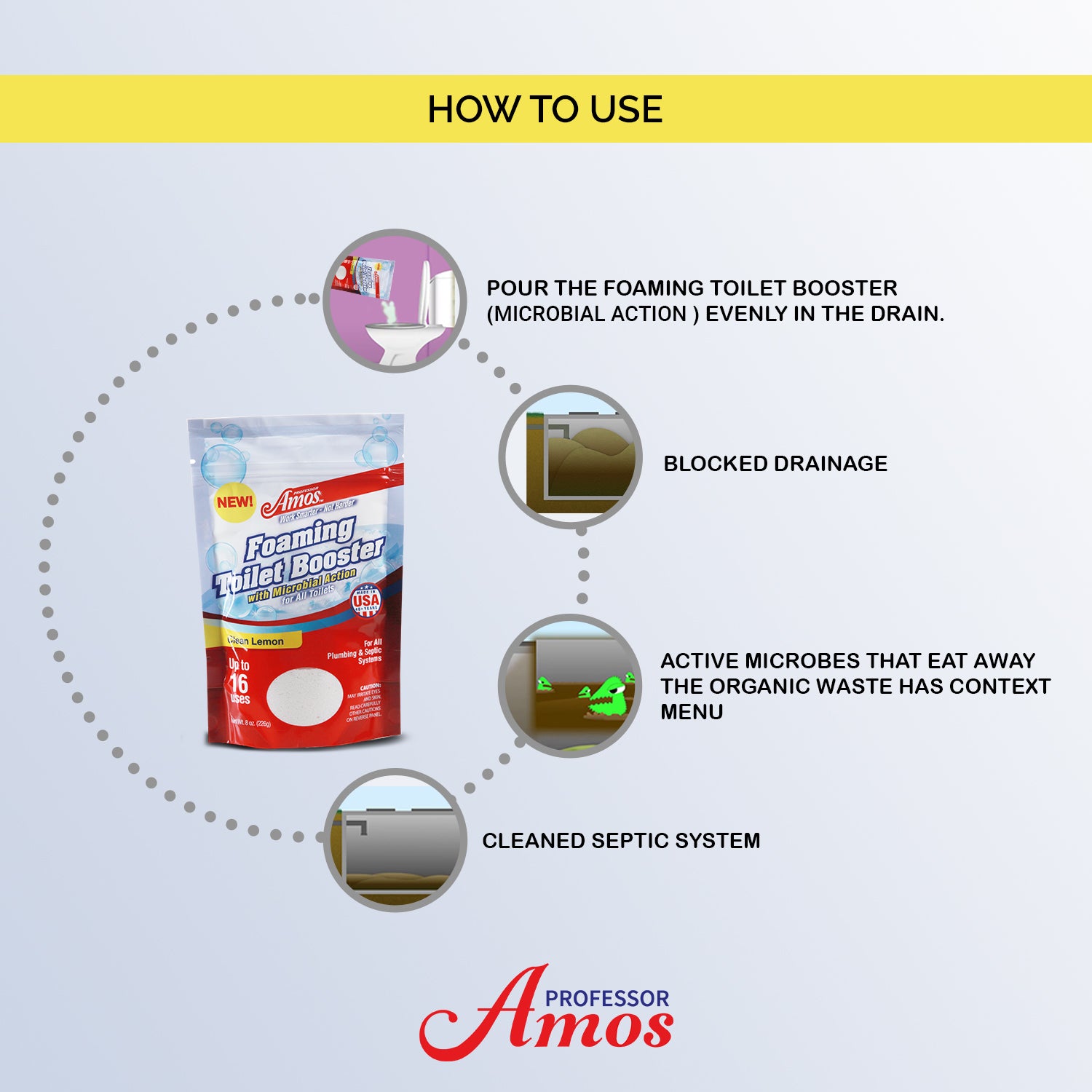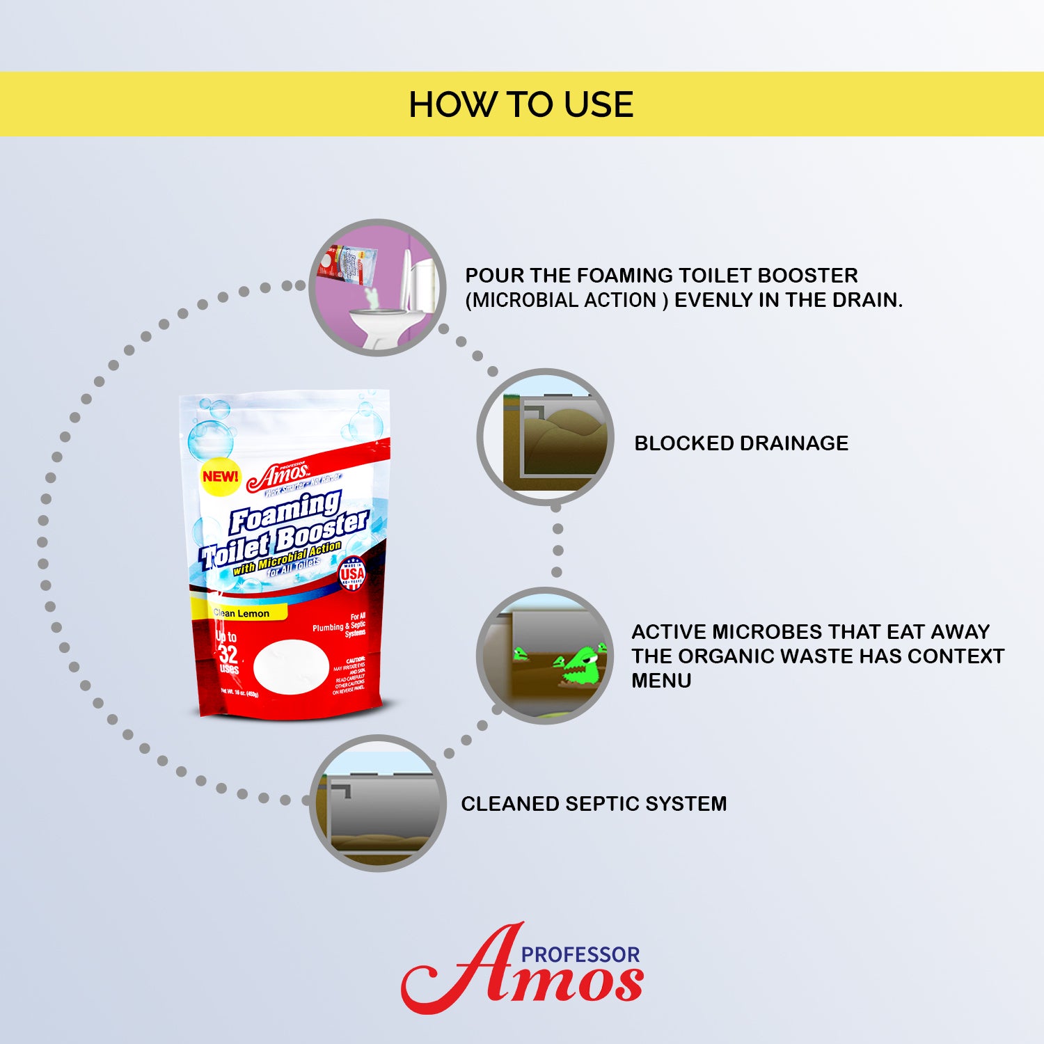 Keep your toilet sparkling clean and fresh with Professor Amos Fast Foaming Microbial Toilet Booster! This innovative formula utilizes powerful microbes to break down waste and eliminate odors at the source, leaving your toilet hygienically clean and smelling fresh with a touch of lemon.
